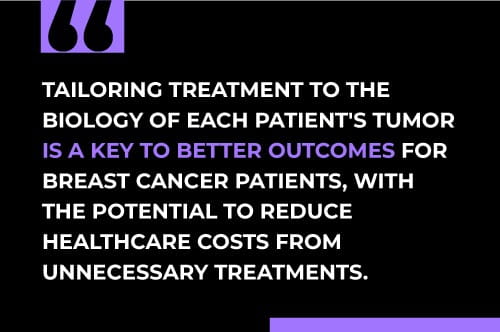 For decades, breast cancer treatment was often a universal approach involving invasive surgery followed by chemotherapy and possible radiation. We now know that not all patients and not all tumors are the same. Personalized medicine, or tailoring treatment to the biology of each patient's tumor is a key to better outcomes for breast cancer patients, with the potential to reduce healthcare costs from unnecessary treatments. The introduction of the Oncotype DX test in 2004 revolutionized the precision medicine movement in cancer care, inexorably changing the way physicians approach chemotherapy treatment decisions.