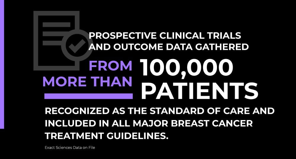 The impact of empowering women with the knowledge to enable them to make confident treatment choices with their provider is profound. Avoiding chemotherapy allows women to avoid the harsh side effects associated with the treatment, including nausea, hair loss, tiredness, and increased risk of developing infections7 ‒ for women whose cancer has already spread to their lymph nodes and who might have automatically received chemotherapy in the past, this is especially meaningful. For women with more aggressive disease for whom chemotherapy can be lifesaving8, they have confidence they’re choosing a treatment that’s right for them.