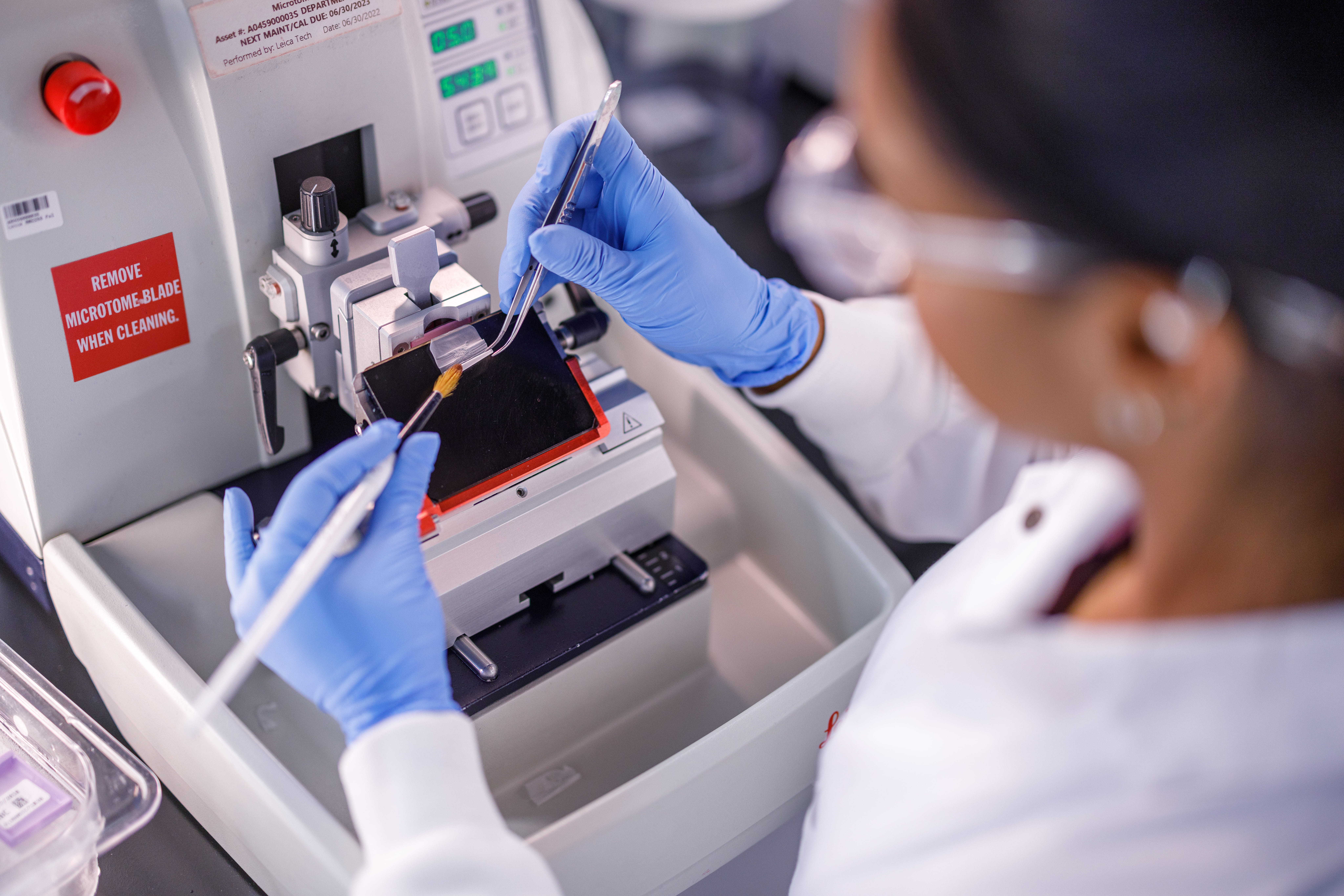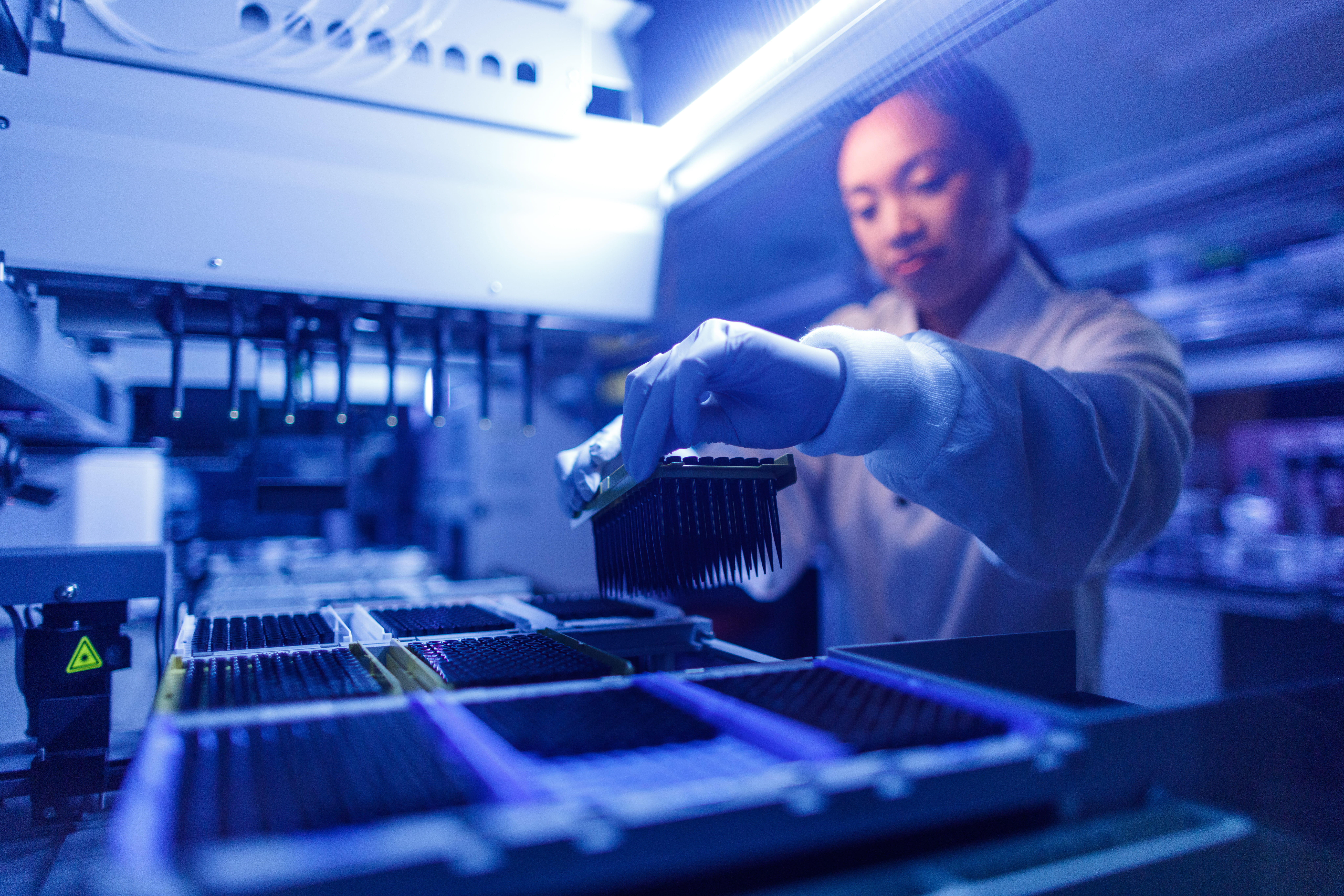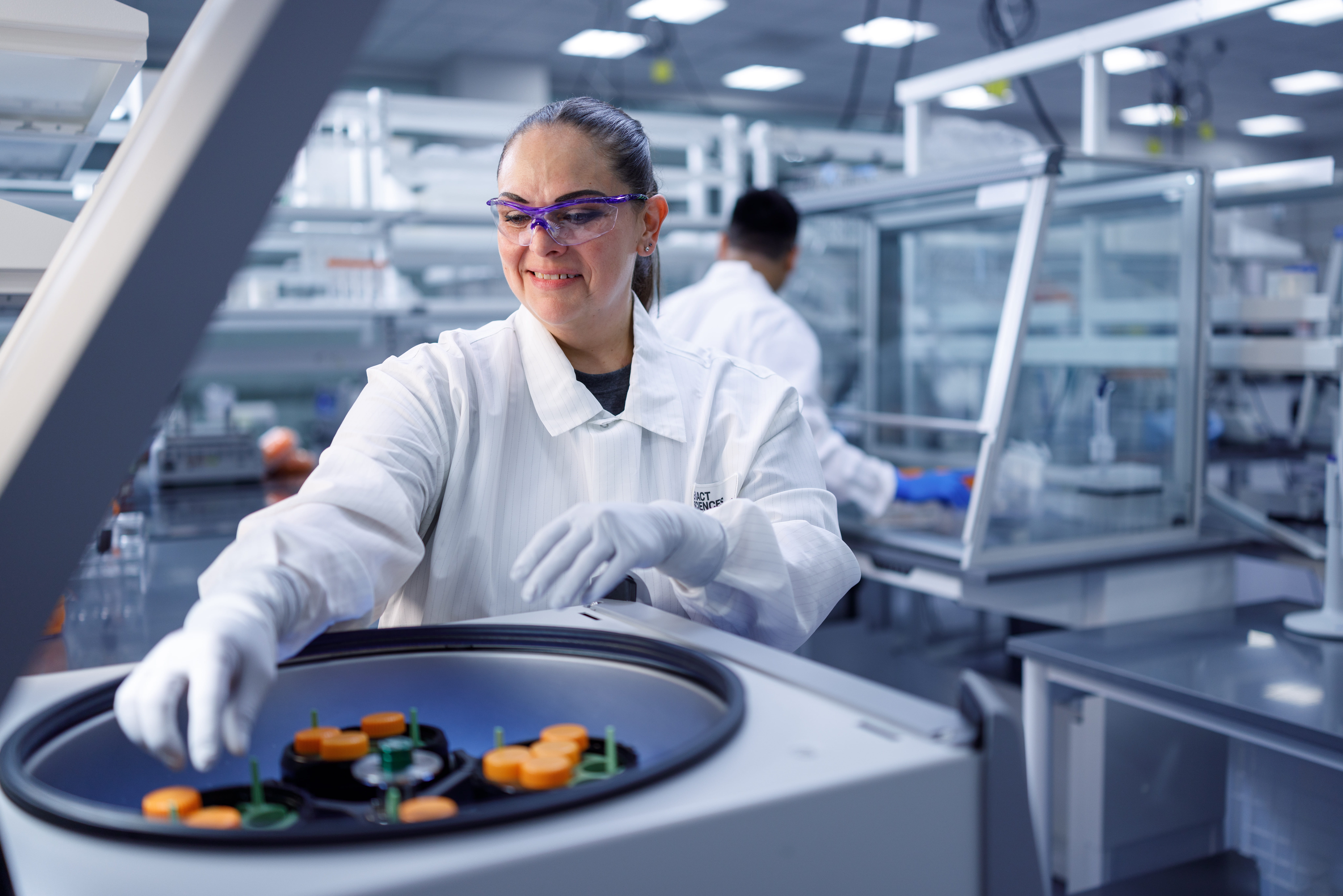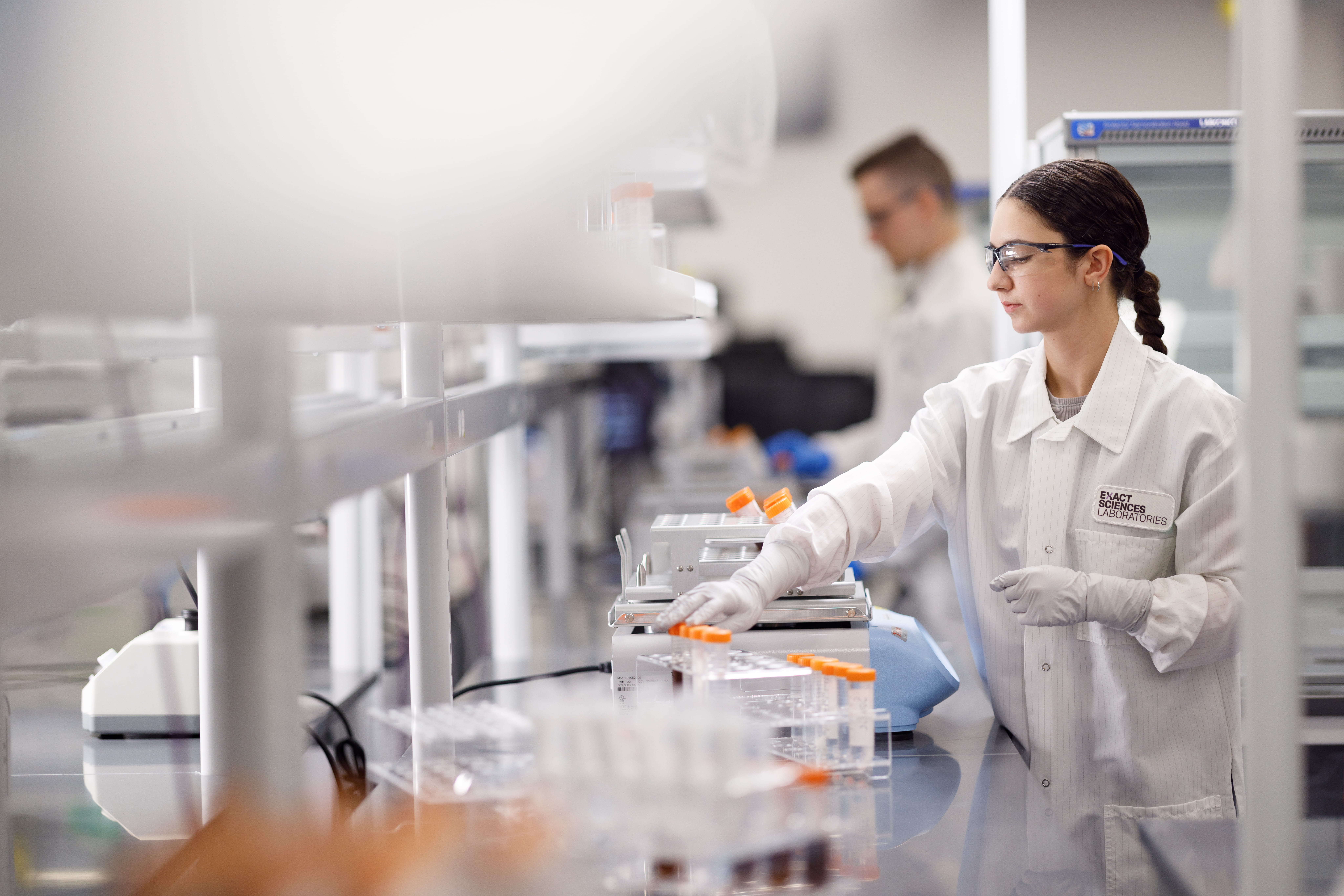 Exact Sciences employee processing breast cancer samples in Redwood City, CA laboratory